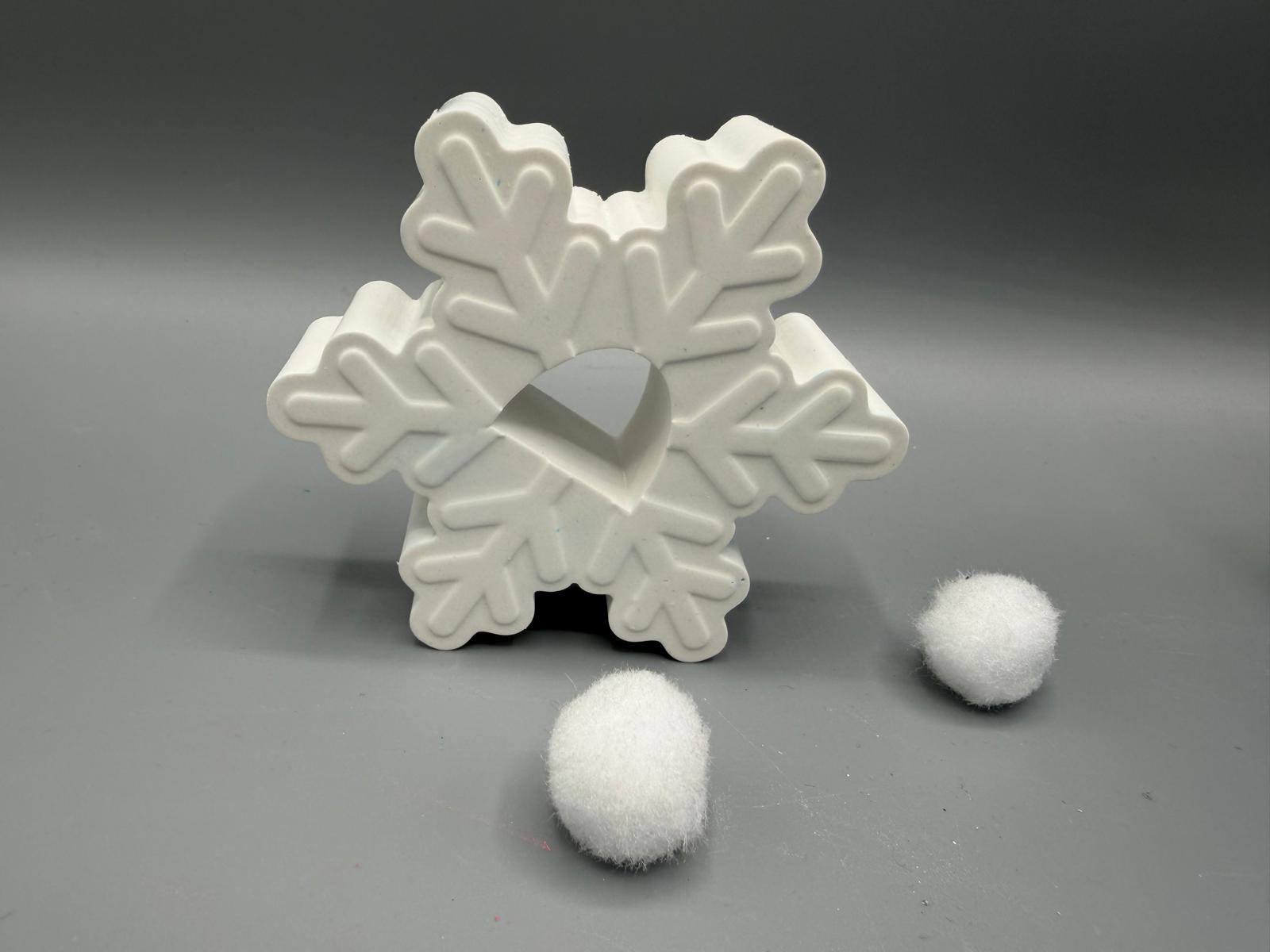 Diese stilvolle Schneeflocke bringt winterliche Eleganz in Ihr Zuhause. Die liebevoll ausgearbeitete Form mit weichen Konturen und einem zentralen Herz-Ausschnitt macht sie zu einem besonderen Blickfang – perfekt für die Winter- und Weihnachtszeit.